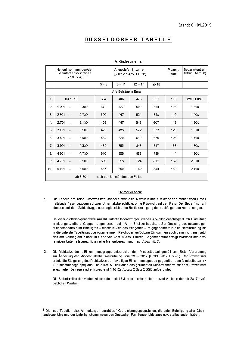 Düsseldorfer Tabelle als PDF